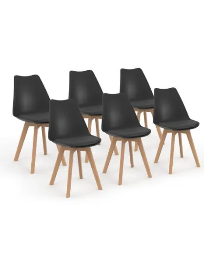 6 Chaises Nordia assise noire et pieds bois - 46x51x79,5 cm