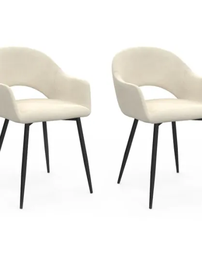 2 Chaises avec accoudoirs Rebecca en velours crème et pieds métal