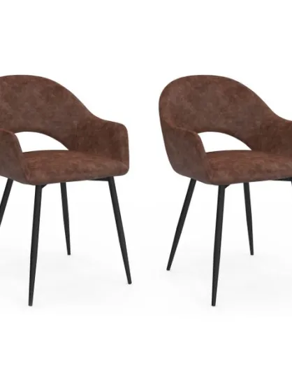 2 Chaises avec accoudoirs Rebecca en velours marron et pieds métal