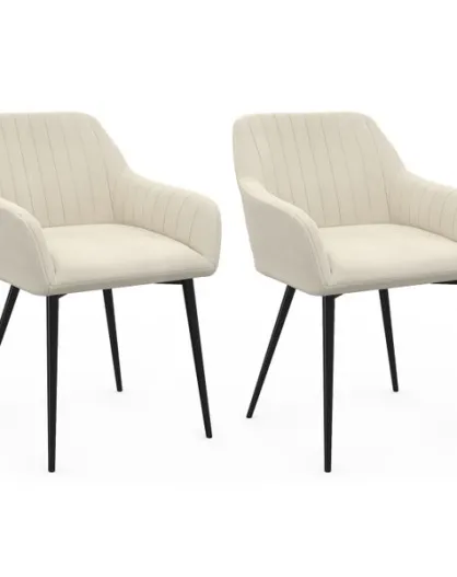 2 Chaises avec accoudoirs Ariana en velours crème et pieds métal