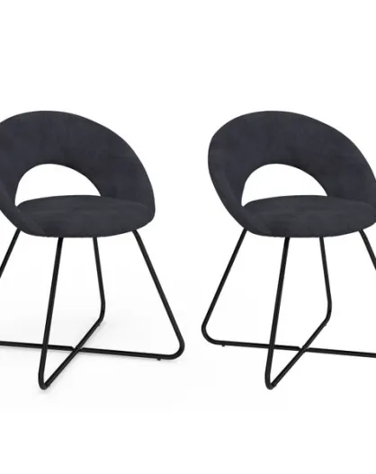 2 Chaises Malone en velours gris foncé et pieds noirs
