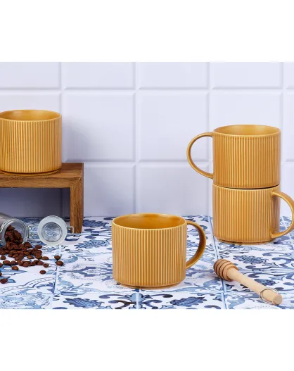 4 Mugs Scandi jaune ocre - 50 cl