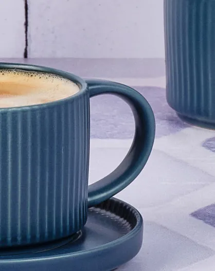 8 Tasses Scandi Et Soucoupe bleu marine - 15 cl