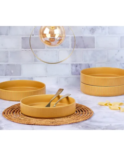 4 Assiettes Creuses Scandi jaune ocre - 100 cl