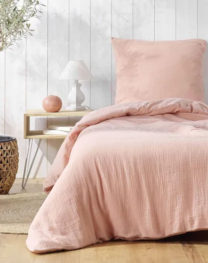 Parure housse de couette en Gaze de Coton rose