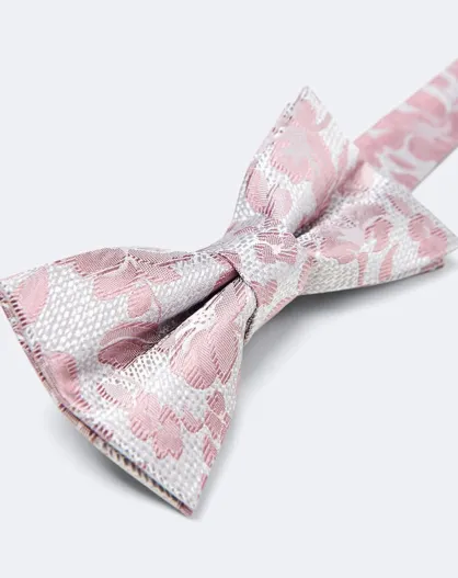 Noeud papillon 100% Soie Slayette à fleurs bois de rose