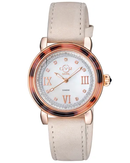 Montre Quartz Femme Marsala Tortoise en Cuir & Diamants 0.063 ct beige