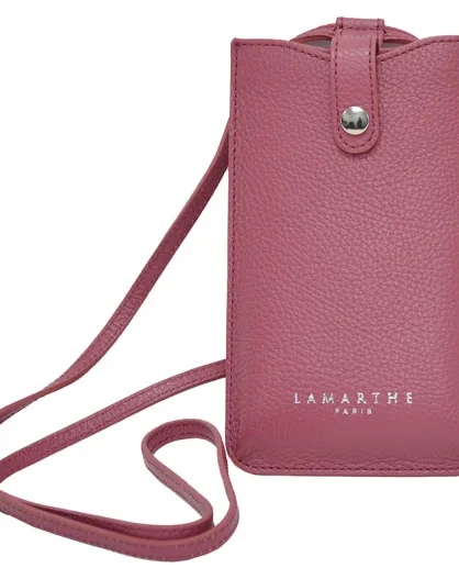 Étui porte-téléphone en Cuir Ambre fuchsia - 10.5x19 cm
