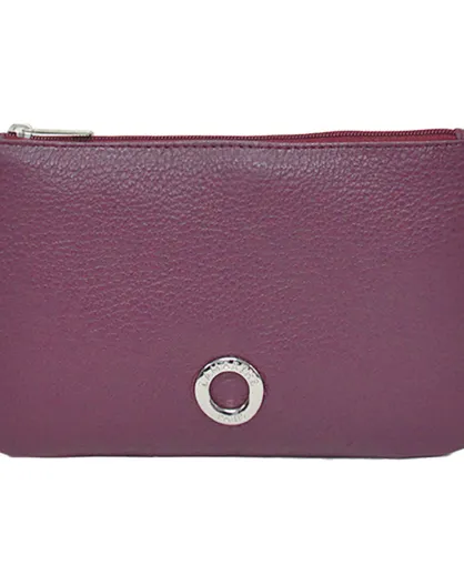 Pochette zippée en Cuir Prestige prune - 19x11.5x1 cm