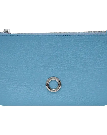 Pochette zippée en Cuir Prestige bleu ciel - 19x11.5x1 cm