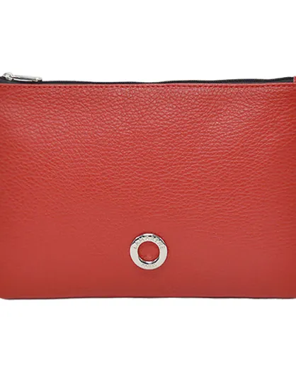 Pochette zippée en Cuir Prestige rouge - 23x14.5x1 cm