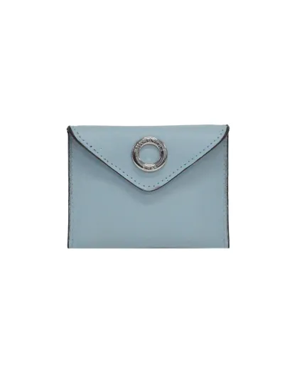 Pochette en cuir de vachette Glamour Bleu ciel - 11x8 cm