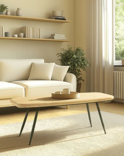 Table basse GM plateau en pin pieds scandinaves métal vert