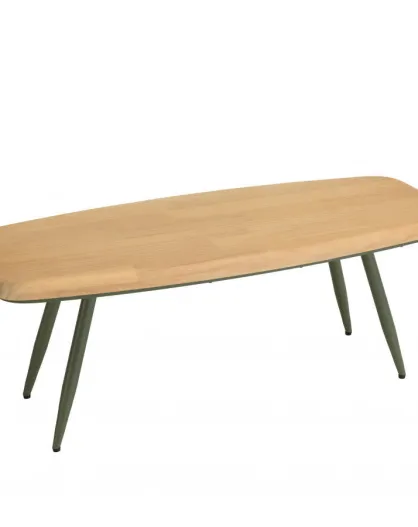 Table basse PM plateau en pin pieds scandinaves métal vert