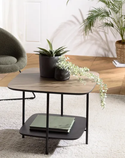 Table basse 2 plateaux PM bi-matière mocha/noir pieds métal