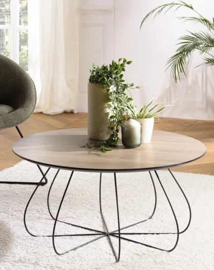 Table basse biseautée 80x80cm mocha pieds forme panier en métal