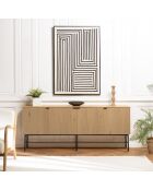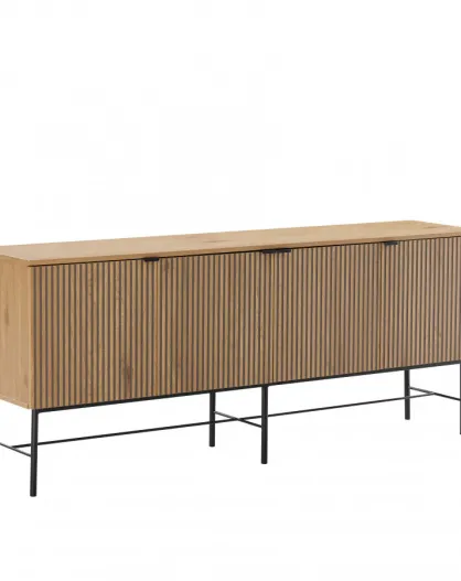 Buffet 4 p. décor effet bois rainuré noir et naturel SCOTT