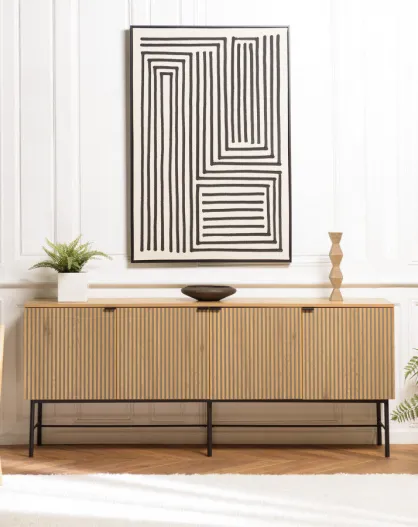 Buffet 4 p. décor effet bois rainuré noir et naturel SCOTT