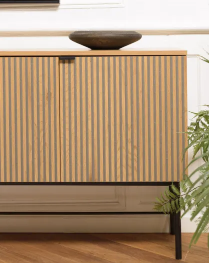Buffet 4 p. décor effet bois rainuré noir et naturel SCOTT