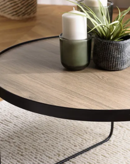 Table basse ronde 70x70cm mocha pieds épingles métal noir