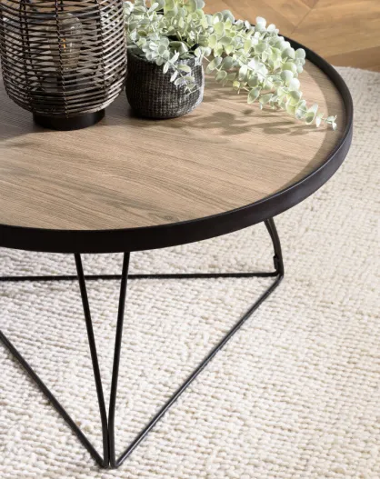 Table basse ronde 70x70cm bois Pin recyclé et pieds métal noir