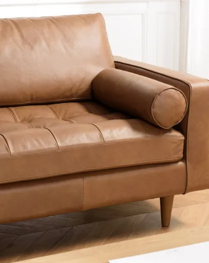 Canapé 3 places cuir couleur caramel assise capitonnée PIERRE