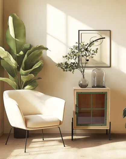 Buffet 1 porte vitrée encadrement vert pin et métal noir