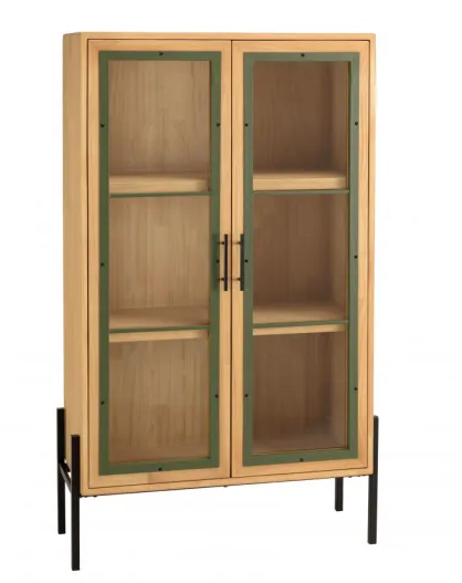 Vaisselier 2 portes vitrées encadrement vert pin et métal noir
