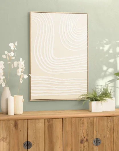 Décoration murale C - 83x123cm lignes abstraites, cadre naturel