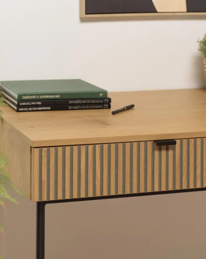 Bureau 2 tiroirs décor effet bois rainuré noir et naturel SCOTT
