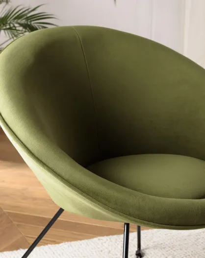 Fauteuil tissu velours vert olive pieds croisés métal noir AGATHE