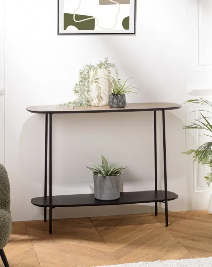 Console 2 plateaux 100x30cm bi-matière mocha/noir pieds métal