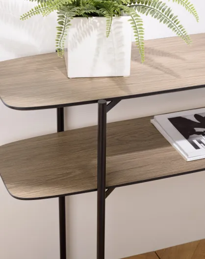 Console 2 t. décor effet bois rainuré noir/naturel SCOTT