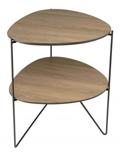 Table d'appoint 2 plateaux ovoïdes couleur mocha pieds métal