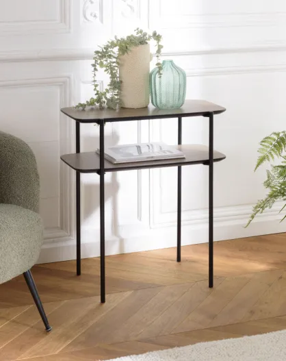 Table d'appoint double plateau couleur mocha pieds métal noir
