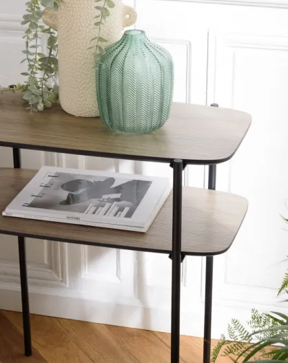 Table d'appoint double plateau couleur mocha pieds métal noir
