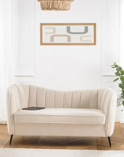 Canapé vague 2 places tissu bouclette écru pieds métal