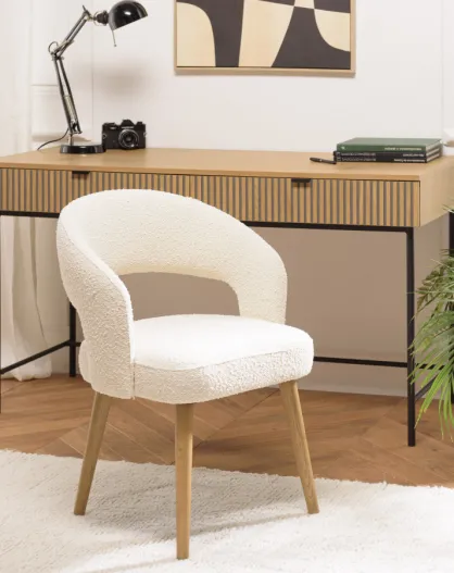 PIERRE - Chaise en tissu bouclette écru, dossier ouvert, pieds en bois