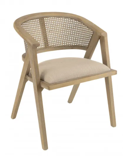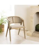 Chaise en bois assise tissu couleur lin dossier rotin naturel PIERRE