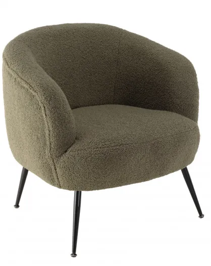Fauteuil cosy tissu bouclette vert kaki pieds métal noir AGATHE