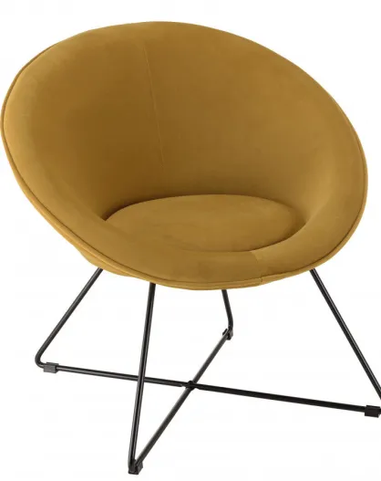 Fauteuil tissu velours jaune moutarde pieds croisés métal noir AGATHE