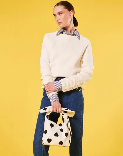 Pull écru en laine et coton ecru