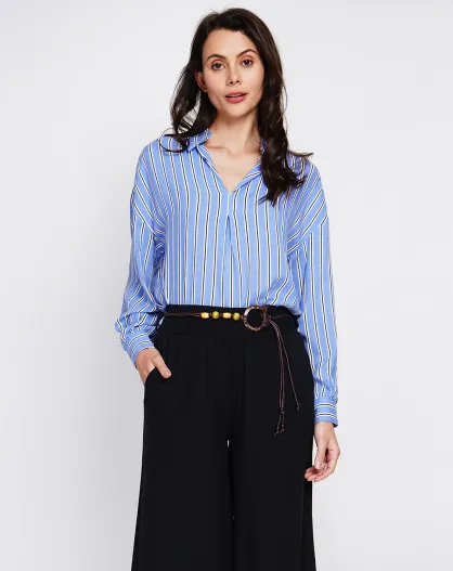 Tunique col tunisien en lin mélangé Paulette azur