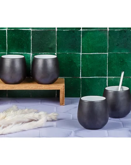 4 Mugs en Grès Gourmet blanc granité/noir onyx - 40 cL 8.5x8.5x9.5 cm