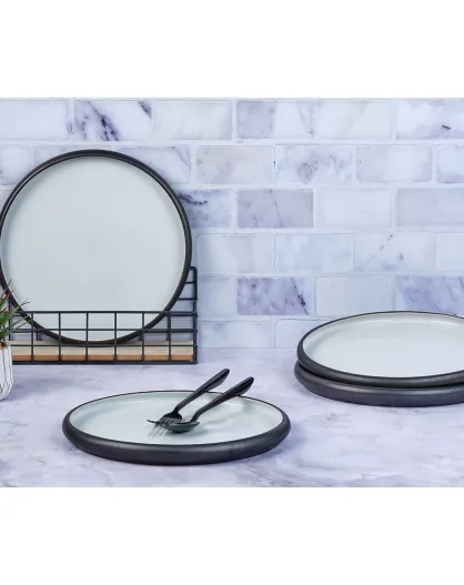 4 Assiettes Gourmet blanc granité/noir onyx - 28x28x3 cm