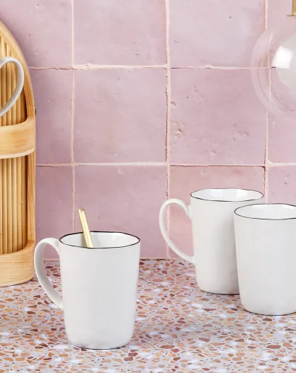4 Mugs en Grès Gourmet blanc granité/noir onyx - 40 cL 8.5x8.5x9.5 cm