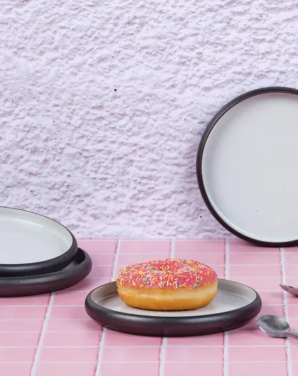 4 Assiettes en Grès Gourmet blanc granité/noir onyx - D.15 cm
