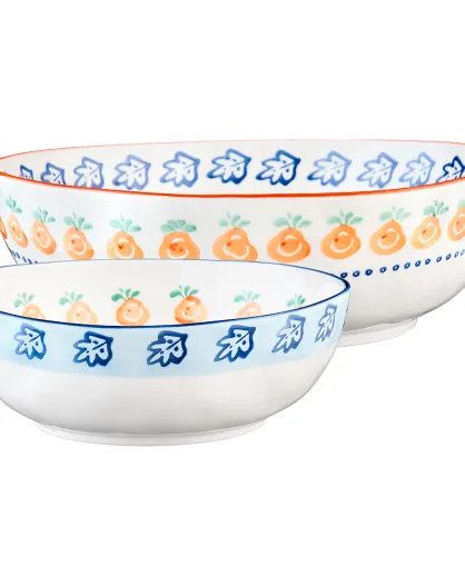 2 Saladiers en Porcelaine Napoli multicolores - 35x17.7x35.3 cm