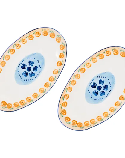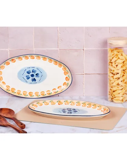 2 Plateaux de service en Porcelaine Napoli multicolores - 36.5x22x3 cm
