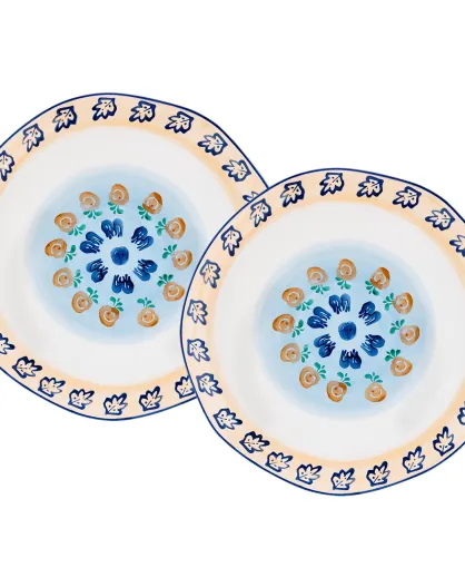 2 Plateaux de service en Porcelaine Napoli multicolores - 30x30x2.8 cm